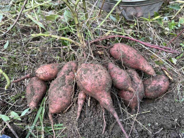サツマイモは虫食いが多いけど「安納芋」が豊作