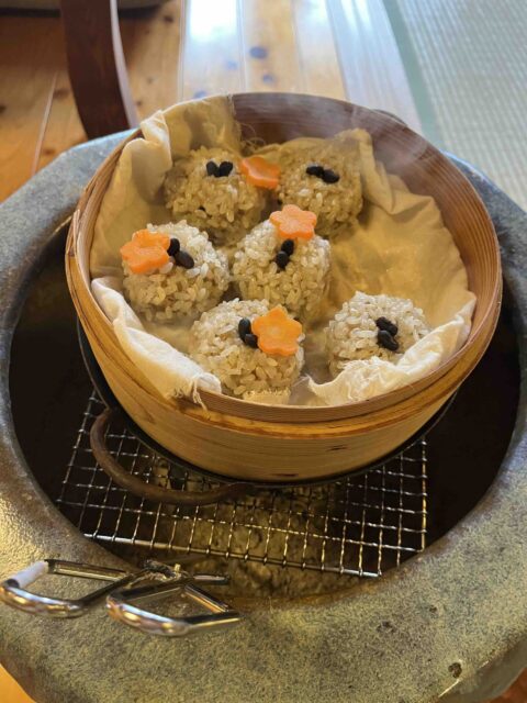 鶯の声を聞きながらせり摘みを楽しむことみさん