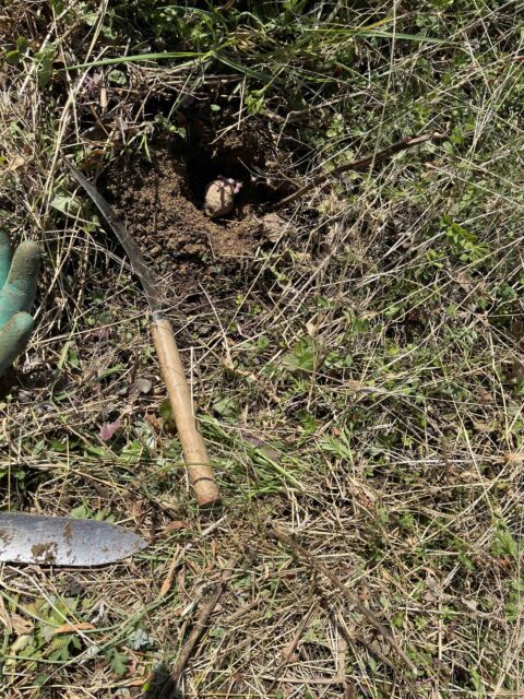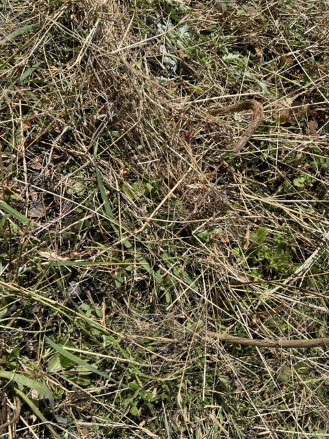 場所はジャガイモのそば、同様に草がたっぷりの畝