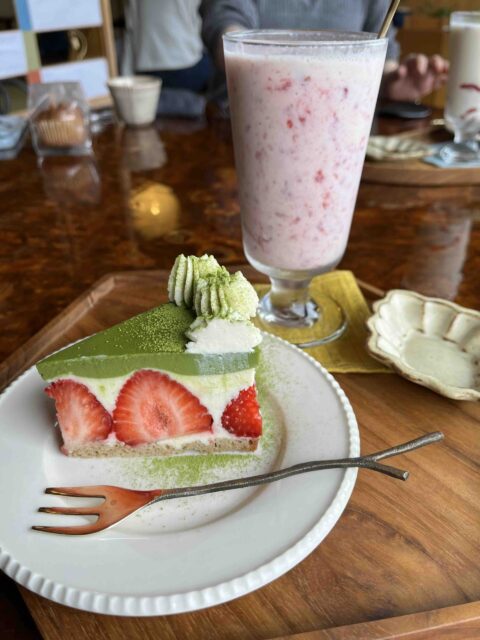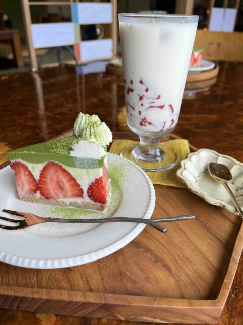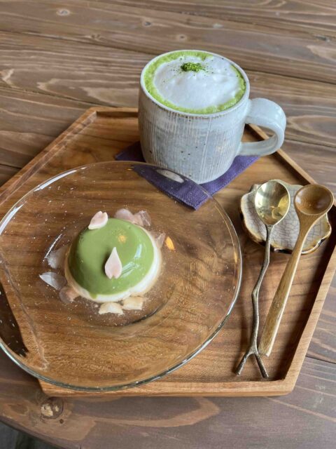 抹茶プリン(ちょっと塩っぱい桜の花の塩漬けのソースがかかってて絶妙の塩梅でした)